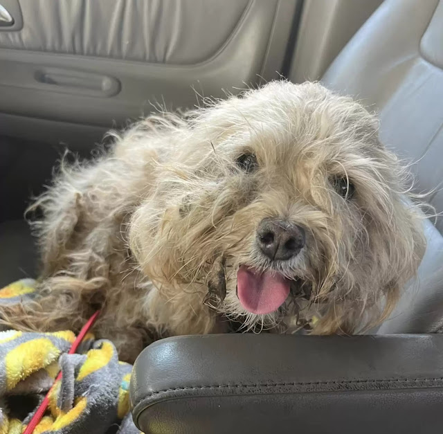 El pelo del perrito era más largo de lo que Hall recordaba y estaba cubierta de esteras.