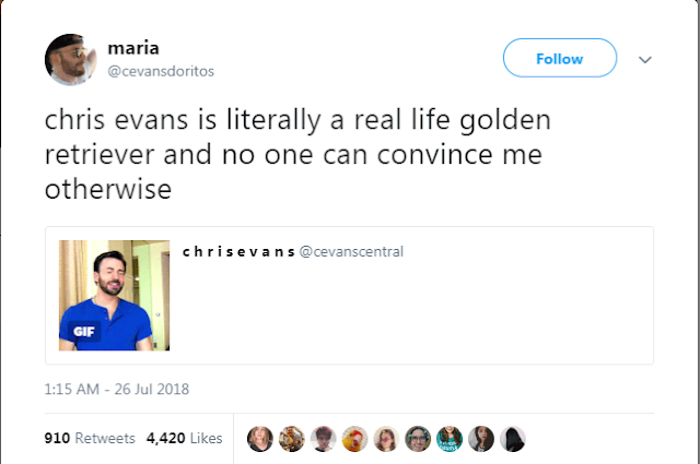 #2 "Chris Evans es literalmente un golden retriever en la vida real y nadie me va a hacer cambiar de opinión"