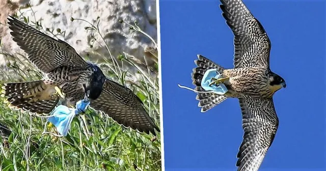 Los efectos devastadores de arrojar basura fueron captados por la cámara cuando un fotógrafo de vida silvestre vio un cubrebocas enredado en las garras de un halcón peregrino.