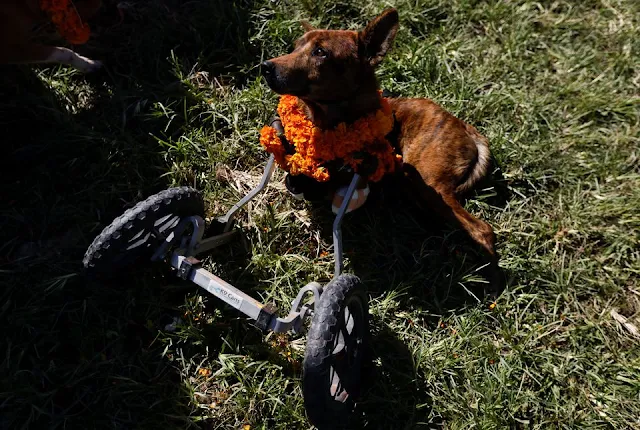 "En el día del Festival de los perros, quiero transmitir el mensaje de que los humanos deben mostrar compasión y amor por los perros y alimentarlos tanto como podamos", dijo el alcalde de Lalitpur, Chiri Babu Maharjan, después de honrar a los perros paralizados en el Sneha Care animal refugio.